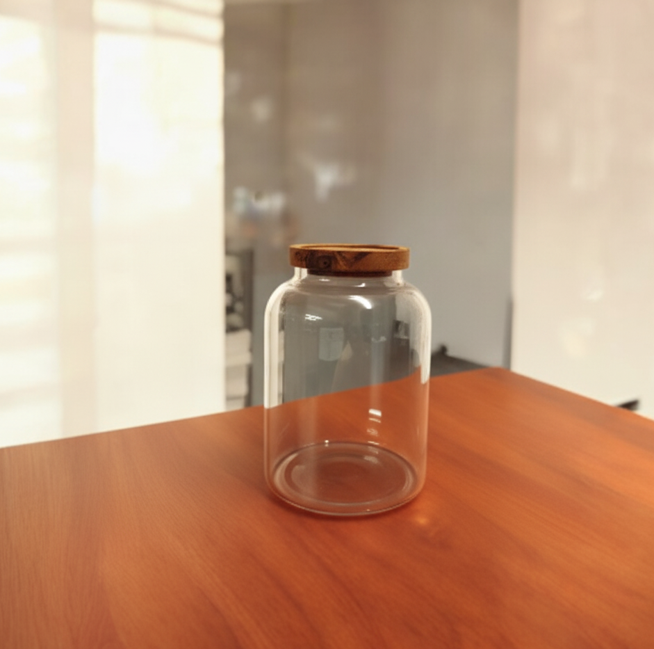 Frasco Redondo Mediano Con Tapa De Madera De Acacia